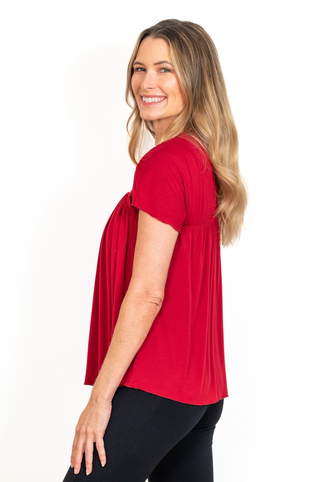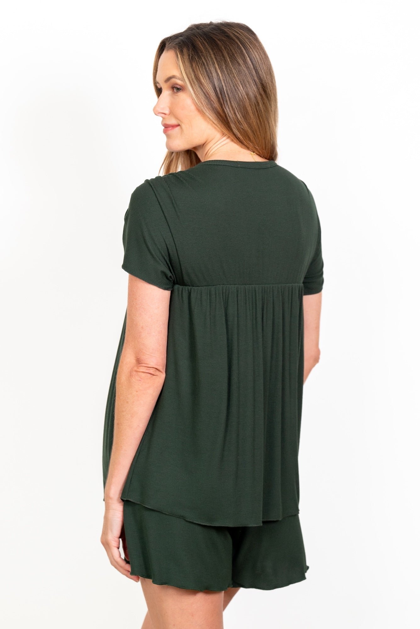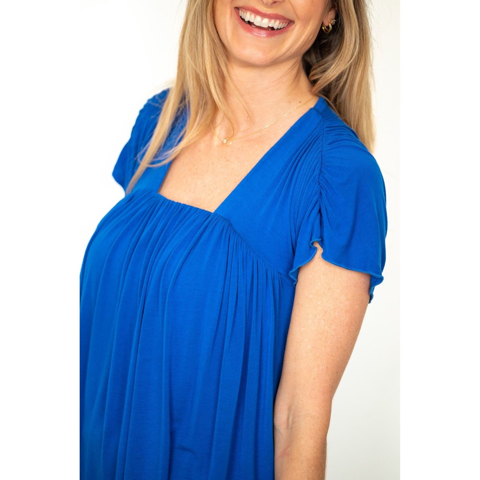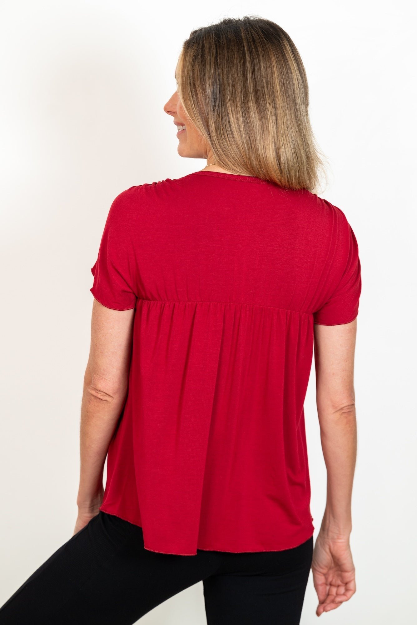 This stylish women’s top features a square neckline and soft pleated detailing for a relaxed, flattering fit. The short sleeves add a touch of ease, making it perfect for everyday wear, casual outings, or layering. Available in Black, Cobalt, Deep Teal, Evergreen Rib, Crimson, and Amethyst Rib, this versatile piece pairs effortlessly with shorts, jeans, or lounge bottoms. Designed for comfort and style, it’s an easy wardrobe essential for any season.